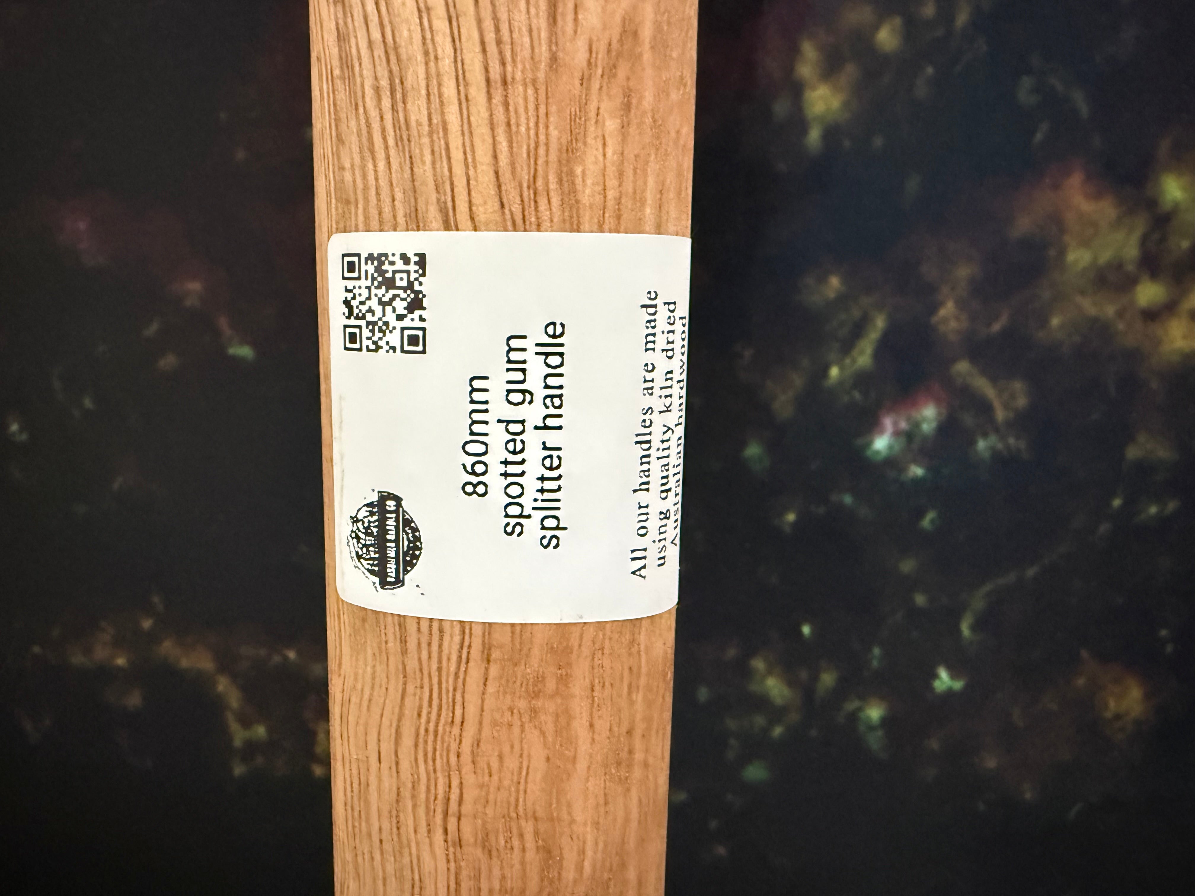 The 860mm Spotted Gum splitter handle is Tasmanian made by Vandiemen Handle Co using locally sourced or australian imported hardwood.